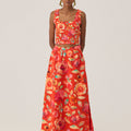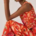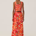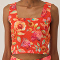 This crop Top is designed with a square neckline and wide shoulder straps, offering a flattering and comfortable fit. Crafted from breathable cotton, perfect for warm weather and printed with hand-illustrated watercolor rose vine. The print is further embellished with subtle beadwork, adding a hint of sparkle and elegance to the piece.